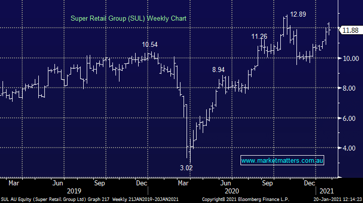 Super Retail Group owns brands such as Rebel, BCF, Macpac & Super Cheap Auto. We think the momentum behind Australian retail remains strong and with savings rates at record levels, spending should increase as confidence builds post pandemic.