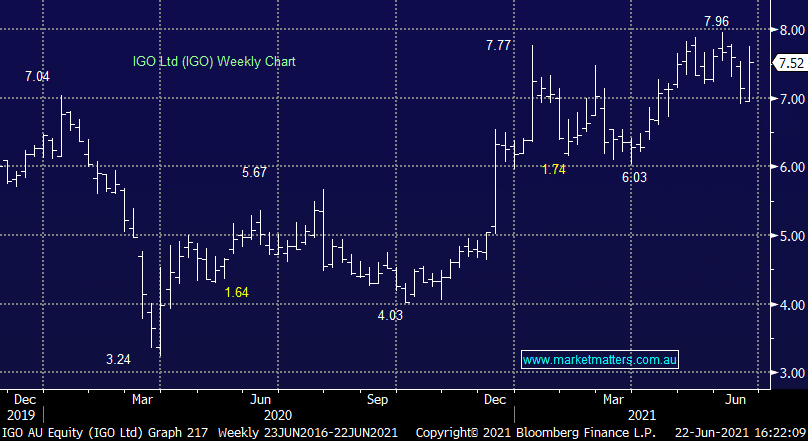 IGO +6.21%: Nickel miner IGO is currently the best performer on the ASX200 today after further updates on their acquisition of a lithium asset. They are working on a deal to secure a 49% stake in Lithium HoldCo, a joint venture with Chinese company Tianqi. The stake will see it hold a 49% interest in the Kwinana Lithium Hydroxide Plant as well as a ~25% stake in a lithium mining operation Greenbushes. The $1.9b deal was initially announced late last year with today’s update showing that a number of key regulatory approvals had been granted with the deal on track for completion by 30 June. Its a trans-formative acquisition for IGO which will soon split its income fairly evenly between nickel and lithium, two key resources needed for batteries with demand set to explode in coming years. The split comes after the recent sale of it’s gold asset Tropicana which funded much of the investment.