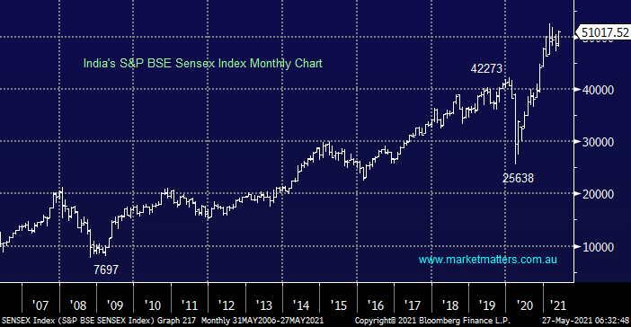 We only have to cast our eyes to the sub-continent to see how equities / risk assets are looking at macro events through rose coloured glasses i.e. when COVID erupted in India stocks simply consolidated their post March 2020 gains but when glimmers of improvement emerge the bull market has kicked back into gear with fresh all-time highs feeling only days away.