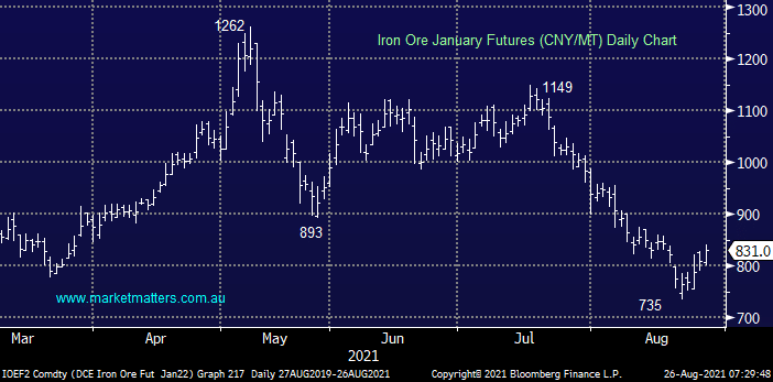 Iron Ore is starting to consolidate after plunging 36% over the last month. After flagging the risks on the downside for the bulk commodity MM is now neutral / bullish iron ore especially after taking into account our positive reflation outlook moving forward.