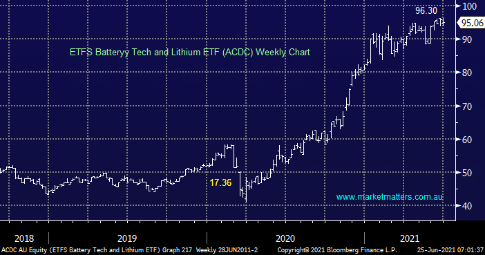 The locally listed ACDC $247m ETF provides some global exposure to the sector but no Australian names reside in its top 10 holdings. Hence today I have briefly looked at 5 ASX stocks with lithium exposure, it’s been a volatile few years that’s for sure making optimum entry levels extremely important.