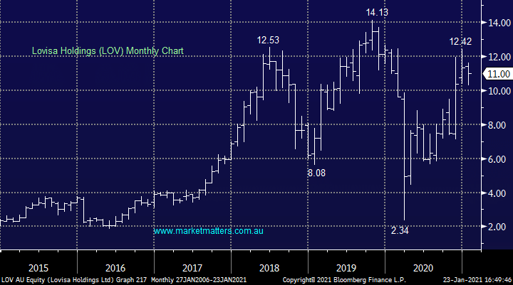 Melbourne bases LOV is a $1.2bn fashion jewellery business which has experienced a volatile road over the last 12-months including a sharp dip earlier in the month after they temporarily closed more than 40 stores in the UK after a national lockdown was ordered by Boris Johnson. The companies Australian operation is almost 4x larger making this event painful but not catastrophic, fortunately it’s only early days for their foray into Europe.