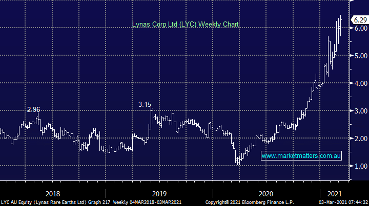 Lynas is the most recent addition to the portfolio. They are a rare earths mining and processing business in Australia and Malaysia. Rare earths are used in a range of tech and the market is dominated by China. This gives Lynas a key advantage, particularly when America is talking about securing reserves and strategic production & processing in the space. We bought into a sharp ~$1.10 pullback in early Feb, initially targeting $7 – not a long way off now.