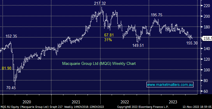 - We are considering increasing our exposure to MQG in the $140 area: MM owns MQG in our Active Growth Portfolio.