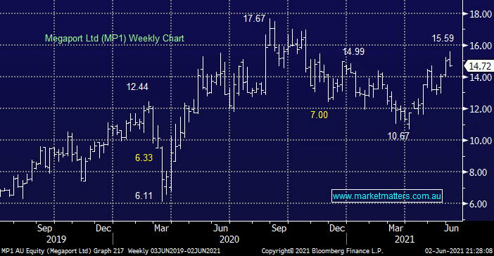 MP1 fell almost 5% yesterday making it the markets worst performer however following its strong 46% recovery over the last couple of months a pullback isn’t surprising, MM will consider increasing our position into any weakness under $14.