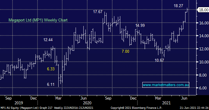 MM has held a 3% position in MP1 since September last year and while it hasn’t always been plain sailing yesterdays pop to fresh all-time highs rewarded our confidence in the business / company. At this stage we remain bullish at least looking for another ~10% upside.