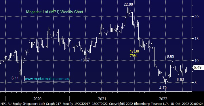 MP1 has looked after us since we went long only 3 weeks ago but its volatile stock which regularly swings ~10% intra-week hence our relatively small 3% position. It also releases a quarterly update this morning that could be a big swing factor. However, for all its bluster the stocks been in the same trading range for a few months and we need to see a close clear of $9 to believe the stocks set to commence a meaningful rally – the reaction to their quarterly result out this morning is likely to have a meaningful impact.