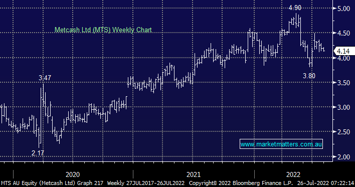 Smaller (and slightly different) cousin to Woolworths (WOW) and Coles (COL) MTS delivered solid FY22 earnings in recent weeks that were significantly ahead of expectations plus sales growth of +8.6% to start 1H23 was encouraging for investors moving forward.  We like the way MTS is moving operationally while its projected ~6% yield over the next 12 months is clearly attractive and one of the reasons MM holds MTS in our Active Income Portfolio plus we simply believe the stock is cheap given the growing momentum behind its hardware division, trading on Est 14x for 2023.