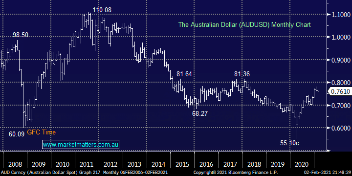 The RBA were probably forced to remain extremely accommodative by the US Fed’s stance, otherwise the already strong $A would have threatened to burst above 80c faster than our central bank would like. A strong $A makes our exports less competitive and creates a headwind for our companies with large $US earnings such as heavyweight CSL which continues to drift lower.