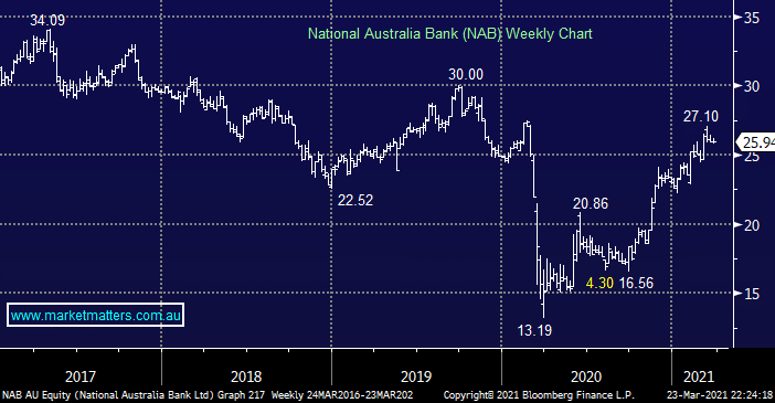 Secondly we are looking at our 10% holdings in both CBA and NAB, the thought process is simple, if we reduce NAB & / or CBA we can add Westpac (WBC) at lower levels into a correction.