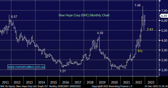 NHC rallied over 4% yesterday in a subdued market making it the 4th best performer on the ASX200, the reason was simple, coal is rallying towards fresh 2022 highs following a recent International Energy Report which forecasted the fossil fuel would enjoy ongoing record demand due to the painful energy crisis. While they didn’t flag huge increases in demand it’s important to remember that coal stocks are currently high yielding and cheap being priced for lower, not higher coal prices.