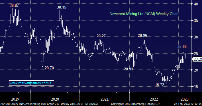 Australia’s largest gold producer NCM delivered a solid report last week but at the same time, they rejected a takeover offer from Newmont (NEM US) although they did offer the suitor the ability to look into its financials to try and entice a higher bid – at least encouraging that there’s probably nothing too untoward lurking in the shadows of its accounts, but less encouraging that no further announcement has been made about this arrangement.