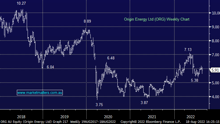 ORG -2.64%: a messy FY22 result and an overall miss from the energy provider today. EBITDA in the second half came in at a little over $1b, around 10% behind the market consensus for the period. The miss was driven by weaker than expected electricity earnings which came under pressure from higher energy purchase costs, squeezing margins by $6/Mwh. The poor electricity result was partly offset by better numbers from the gas unit, however, profit was also reduced by lower tax benefits. There was no guidance provided on the Energy Markets business, however, they provided inline production for APLNG, and lower than expected opex and capex which was a slight positive.