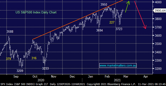 US stocks we mainly strong overnight with the S&P500 rallying +0.65% taking it within only 2.5% of our initial 4000 target, a decent night by the likes of Apple, Amazon & Co and we could be looking at a new handle for the most widely followed index sooner rather than later.
