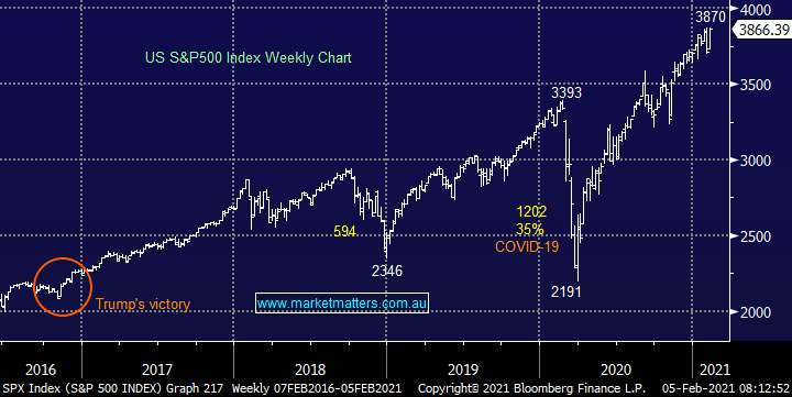 US stocks rallied overnight with the financials advancing 2%, a solid performance in our opinion considering bond yields were very quiet. The game remains the same, sector rotation, and if the elastic band keeps stretching towards the financials at the expense of the resources, we will be tempted to tweak slightly in the direction of the later in the weeks ahead, bonds & the $US are likely to remain the key short-term.