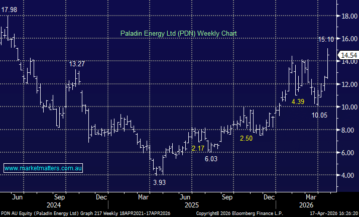 PDN +2.76%: Provided a solid update today, upgrading FY26 production guidance, with the company flagging stronger output from the Langer Heinrich mine as operations continue to ramp up.