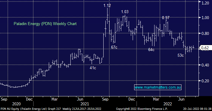The uranium miner announced plans to restart production at the Langer Heinrich mine in Namibia in early 2024 after what will be 6 years of care and maintenance. The restart is now estimated to cost $US118m, up from previous estimates of $US87m, with the company prepared to fund the full project restart if need be with $US177.1m of cash in hand. The project has around a third of production committed already and with the uranium market tightening, we would expect to see further offtake agreements before production kicks off again. We spoke to CEO Ian Purdy & his management team after the announcement yesterday who said they were in advanced discussions with a number of contractors to get the restart underway. They had seen 16% cost inflation in just 3 months so they were on the move to secure prices at these levels. Shares were down yesterday, though largely in line with peers.