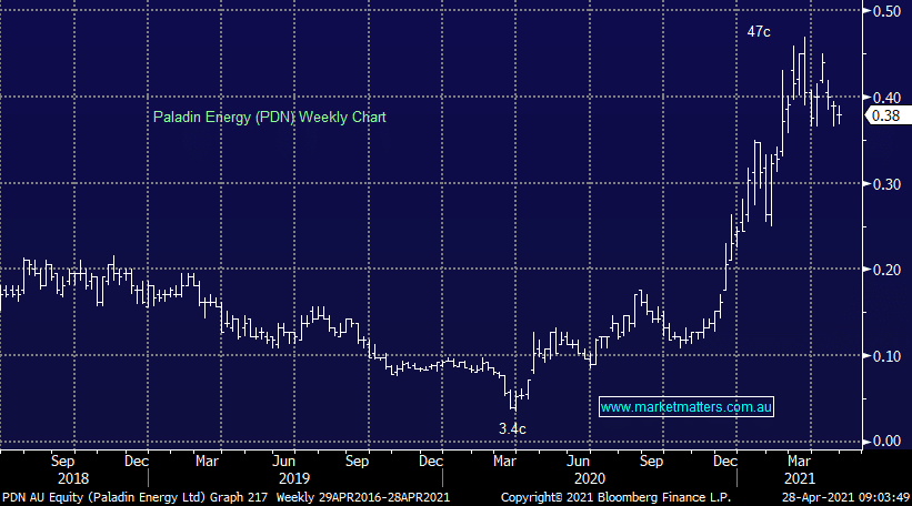 So where do we look to for getting uranium exposure. Paladin (PDN) is MM’s top pick here. Paladin manage the Langer Heinrich mine in Namibia – a mining friendly geography particularly around uranium. The company is well-funded after recently raising ~$220m to redeem the senior notes with the raise well supported. Langer Heinrich is on care and maintenance with a low cost restart, and low operational costs will see it as one of the first to tap the contract market when prices reach a viable level.