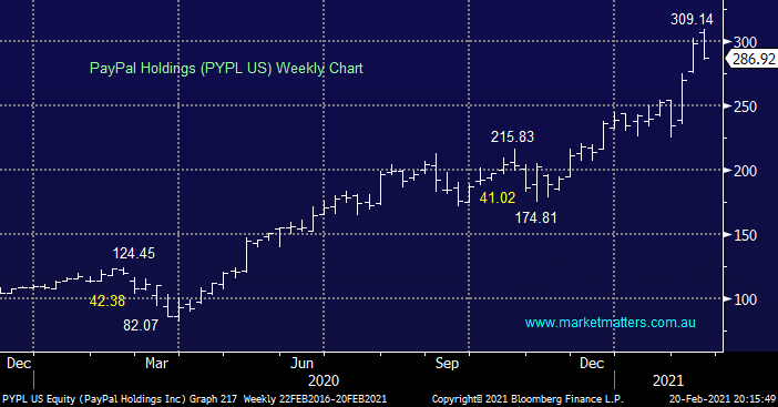 We mentioned PayPal last week, the relatively new age payment gateway PayPal (PYPL US) has performed strongly in 2021 after gaining 16 million new active accounts in Q4 of 2020 alone!