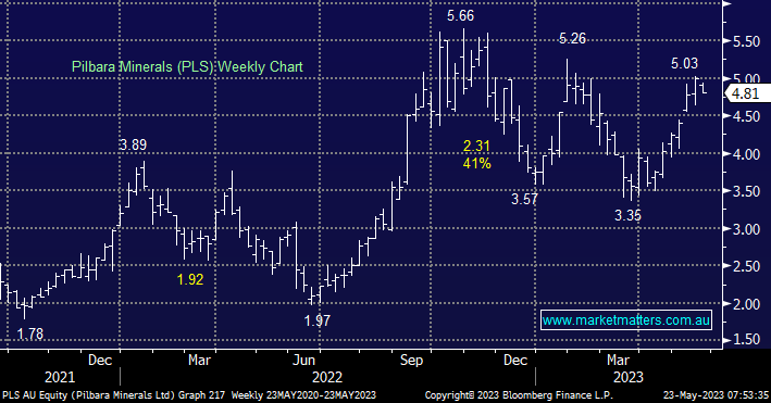 We view PLS as the lower-risk exposure to this risky/volatile sector, growing production should underpin growing earnings and dividends. At their last update, they reconfirmed FY23 production guidance of 600-620kt, with margins for this early producer remaining solid. Their cash balance rose $457m in the quarter, pushing their bank balance up to a net cash position of ~$2.7bn which will support fully franked dividends.