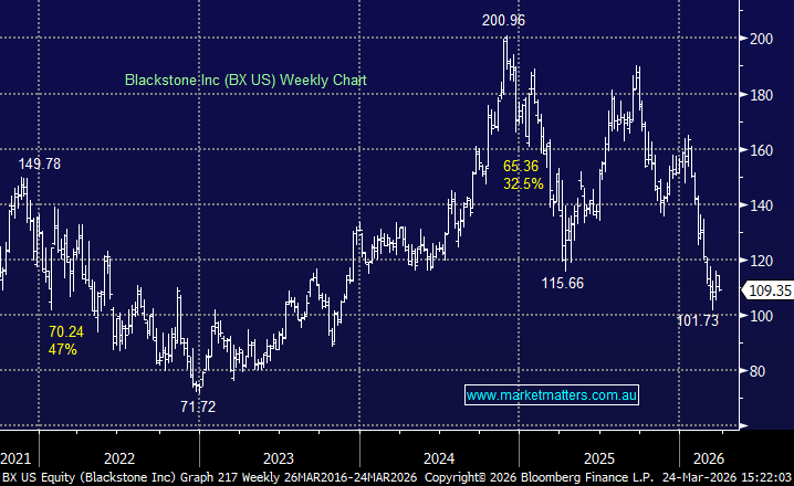 We are adding to our existing position in Blackstone (BX US) into weakness. Given the recent pullback, the prevailing weight has slipped sub 5%.  We are taking this back to a 6% target weight.