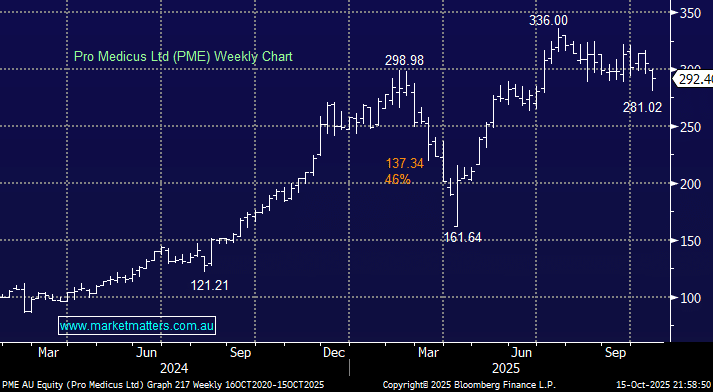 PME bounced back +1.9% on Wednesday after correcting 16% over recent months. In very similar fashion to CBA this momentum play lost support and fell away as the “hot money” went for the exits. During FY 2025, the company secured over $520 million in new agreements, plus $130 million in key renewals, including an $98 million deal with Mercy Health, which pushed the stock above $330. It’s maintained the momentum so far in FY26, with it on track to deliver double-digit revenue growth after securing a $170 million / 10-year deal with UCHealth.
