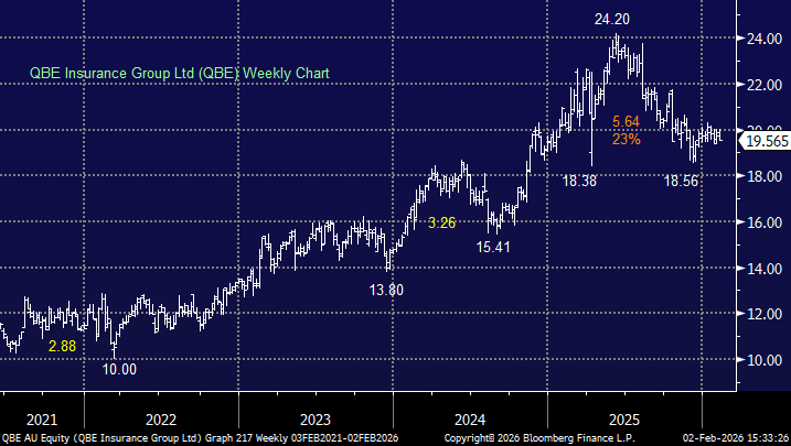 Several US-listed insurance brokers have recently released their 4Q25 results, with outlooks into 2026 appearing resilient. While the market typically focuses on pricing, organic revenue growth is more closely correlated with GDP, which again looks solid into 2026. QBE is growing revenue steadily, while its FY25 result saw a +27% lift in profitability. After correcting over 20%, we see good value emerging in QBE, which MM has patiently held in its Hitlist for months – a forecast 5.2% part-franked yield also supports the investment case.