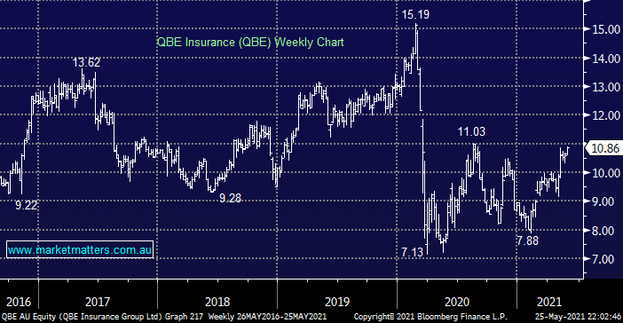 We touched on QBE in late April when the stock was ~$9.50 at the time MM was targeting around 20% upside citing rising bond yields as the driving force. The quality of the business precluded us from following our analysis which is obviously frustrating today but if we had gone long we would be looking to trim / cut our position into strength above $11.