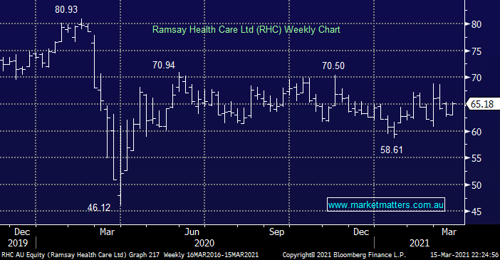 As we touched on earlier MM already holds 4% of our MM Flagship Growth Portfolio in RHC, we like this private hospital operator which also qualifies as a quasi-recovery play as people can finally get there planned elective surgeries performed. We can see a test of $80 in the coming year with our main question being do we average, or diversify elsewhere within the sector – my inclination is to diversify.