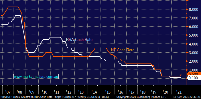 The correlation between interest rates at home and across the Tasman is very strong and when the RBNZ start hiking it’s a very brave and contrarian investor who doesn’t anticipate the same path at home – the much discussed home loan rates look destined to be higher into 2022.