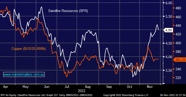 - We believe SFR will need copper to regain its “Mojo” before it can attempt a rally towards $6 i.e. this will probably need China to calm down.