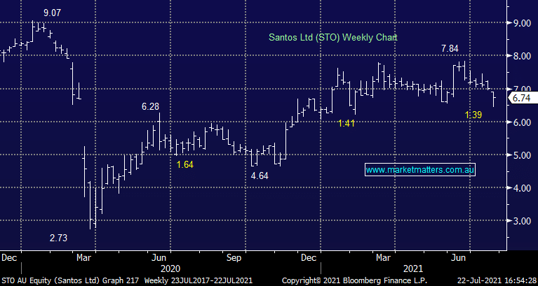 STO +2.59%: Strong day for Santos, helped by strength in energy markets overnight but also a decent quarterly result. Production was lower in the 2nd quarter following the sale of assets which was offset in part by stronger production in WA & Queensland. They tightened guidance to the top end of the previous range for both production and sales with costs coming down as a result of higher production.