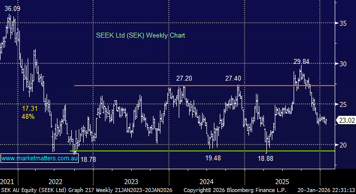 Long-term, it’s hard to clarify AI’s impact on job ads, as many people will be forced to re-skill as AI replaces many roles. Another uncertain variable, which, along with the economy and overall negative sentiment towards growth, is weighing on SEK’s share price and valuation. If the market continues to believe the RBA will hike rates, SEK may struggle to enjoy any meaningful upside through 2026 – not our preferred scenario.