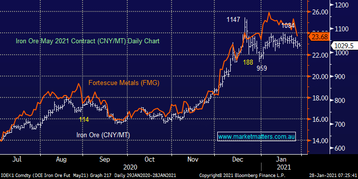 At this stage of the cycle, MM still believes iron ore will go higher in 2021 as reflation takes hold with our initial downside targets a few % lower and 900 CNY/MT, the main question from our perspective is will the current consolidation provide opportunities in the sector.