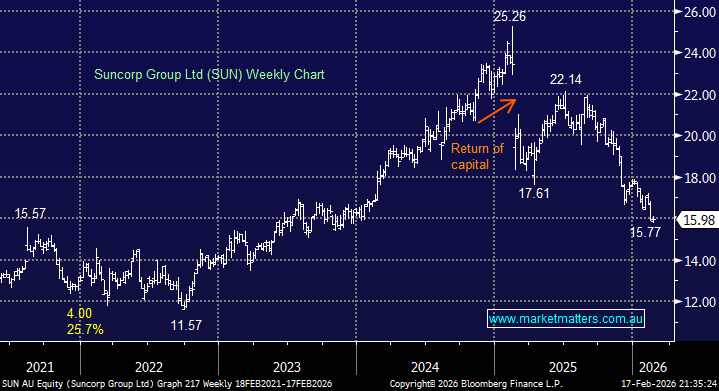 Suncorp’s 1H result out this morning looks ugly on the surface, but importantly it was broadly consistent with the softer outcome expected. Elevated natural hazard losses and investment mark-to-market headwinds (due to higher rates) has impacted the profit line, although they maintained full year guidance.
