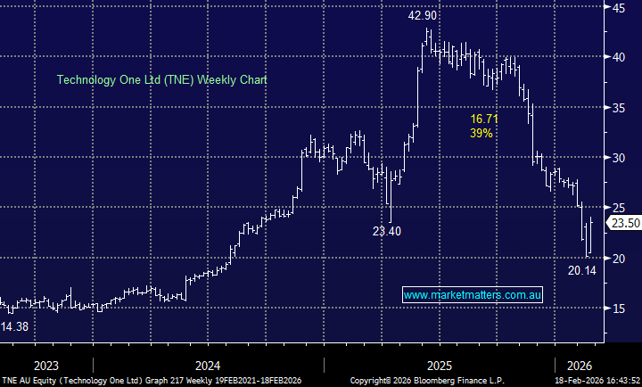 TNE +8.2%: hosted their AGM today and struck a confident tone, guiding to the high end of its full-year profit growth range and highlighting a robust second-half outlook. Recurring revenue momentum remains strong, reinforcing TNE’s position as one of the highest-quality SaaS names on the ASX.