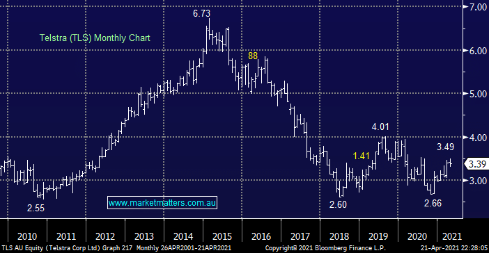 Arguably Australia’s most disliked business due to its ongoing customer service issues however the stock after years of underperformance has presented investors with some value in 2021. The stocks 4.7% fully franked yield is attractive in today’s world especially as we feel its sustainable after they changed their rhetoric around dividends being linked to free cash flow. NB: We hold in the Income Portfolio.