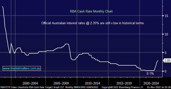 As most economists and MM forecast, the RBA increased the cash rate by 0.25% to 2.85% today, and have now raised interest rates by 2.75% over 7 months. It seems clear that the RBA are nearing a point of reflection (not inflexion!),  with a final hike in December likely before  they step back and see how the lag effect on this aggressive path of monetary tightening plays out.  Key points from todays decision include: