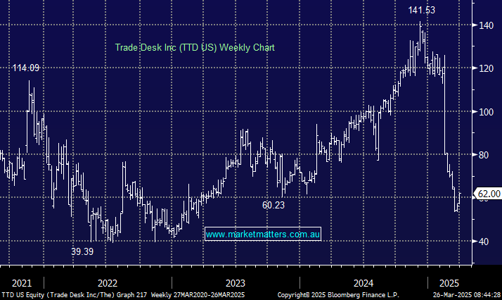 The advertising technology company reported a poor quarterly and the stock has fallen sharply – more than halving from ~$US140 to this mornings close of $US62. Digital advertising remains the future, and we are confident that one soft quarter has not broken the TTD model. This recent weakness represents a buying opportunity, irrespective of the macro backdrop.