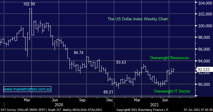 The $US kicked higher yesterday after drifting early, the result being fairly aggressive pullbacks in the likes of crude, copper and gold – as we anticipate further upside from the greenback MM is holding back from increasing our exposure to the resources although gold stocks do appear to be forming a base.