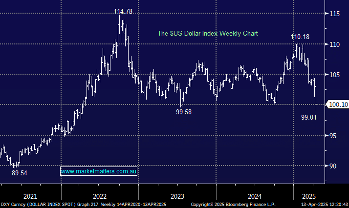 The US dollar has been a big loser so far in Trump 2.0 as countries look for alternatives to the previous sanctuary/safe haven of the Greenback. Fears of an economic slowdown &/or recession have contributed to the weakness on fears that the Fed will need to deliver multiple rate cuts in the months ahead. However, we have already seen the US dollar fall 10% from this year’s high, and again, a period of consolidation is likely.