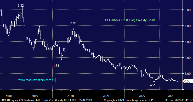 We are cutting SBM from the portfolio for a loss before it goes ex-entitlement for the Genesis (GMD) shares following the deal to sell it’s Leonora assets, preferring Silver Lake (SLR) for gold exposure.