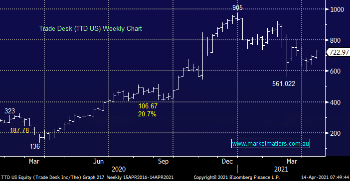 The Trade Desk (TTD US) operates a software platform that allows for advertisers to buy digital screen time on various formats and devices, its been the standout performer in our international portfolio even after suffering at the hands of rising bond yields. We like TTD into their quarterly update in early May.