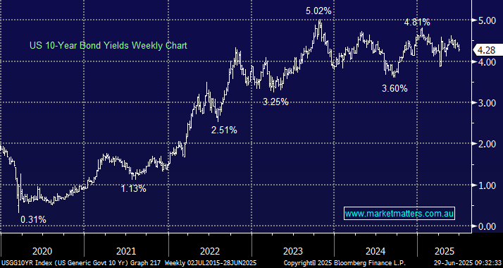 - We can see the US 10s continuing to rotate around 4%, as they have for the last few years, with a downside bias.