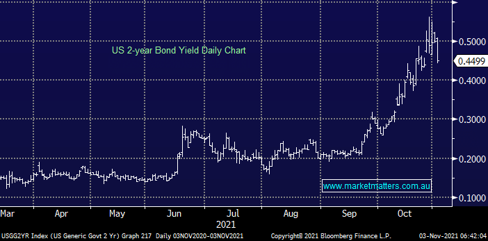The Fed meets this week which will probably add some volatility to bond markets but we actually think most of the action for 2021 is now behind us. The shorter dated 2-years don’t look unlike our own 3-years showing the RBA wasn’t just fighting a local move i.e. globally rates are being flagged to rise sooner than previously expected as the global economy led by individual companies recovers from COVID faster than many predicted.