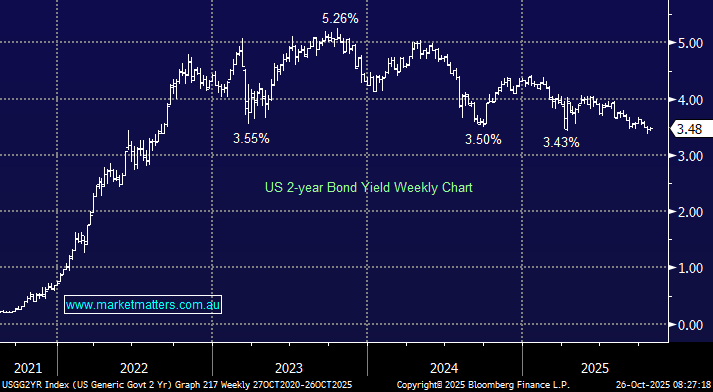 However, the impact on US short-term bond yields was minimal, as the 2s drifted below 3.5% illustrating the bond market has been looking for 4, and probably 5, Fed cuts over the next year. To us this illustrates how stocks are grabbing at any bullish news, even if it’s been priced into credit markets for many months, reinforcing the current bull market in stocks.