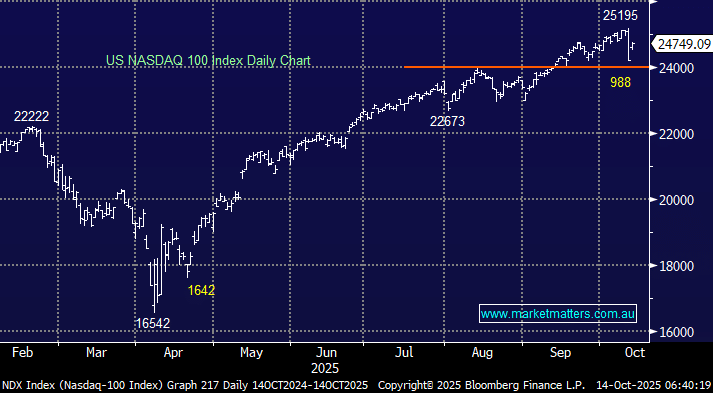 The NASDAQ bounced over 2% overnight as traders chased stocks as the US and China signalled willingness to keep trade negotiations alive, Middle East tensions cooled while the AI rally powered ahead. A key gauge of chipmakers surged +5% as Broadcom Inc. soared 10% – OpenAI agreed to buy its custom chips and networking equipment in a multiyear agreement. With trade jitters easing and investors brushing aside fears of a tech-fuelled bubble, the market rebound showed that the buy-the-dip mentality remains firmly in place. That’s just ahead of the start of the US quarterly earnings season, with a barrage of reports from big banks on Tuesday – further volatility is almost guaranteed on at least the stock level.