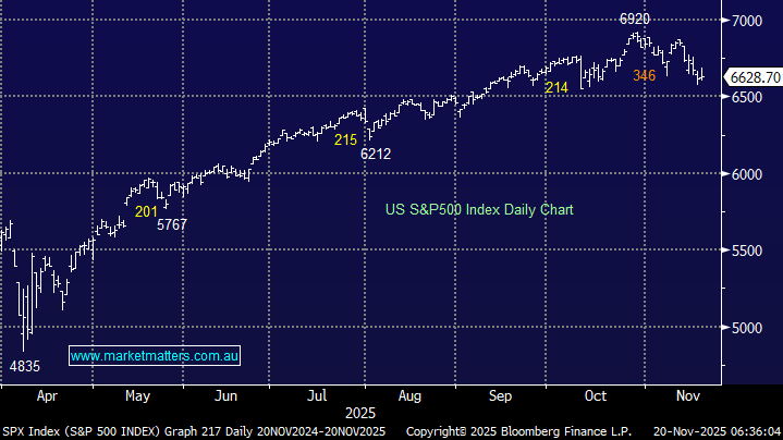 The S&P 500 surrendered most of its early gains overnight but still closed up +0.4%, plus futures have now rallied post NVDA numbers. The Fed minutes weighed on the broader market, but a bounce by the “AI Trade” ultimately kept the bears in check: Nvidia +2%, Oracle +1.7%, and Alphabet +3.5%. There are no AI concerns obvious in Alphabet which traded above $US300 for the first time in its history – closing at a new all-time high.