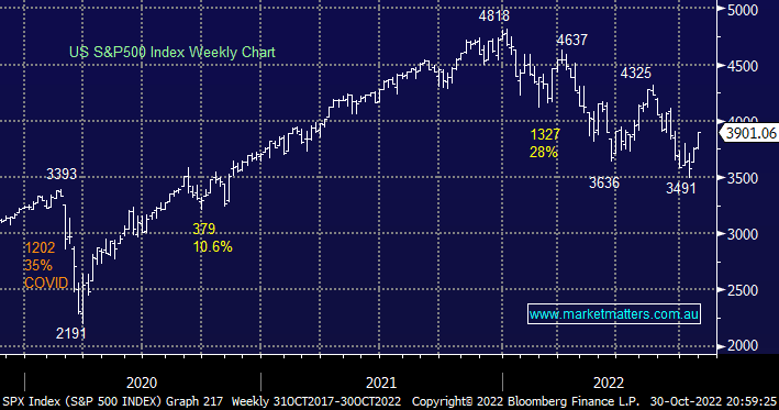 • Following the latest leg lower since mid-August we remain bullish on US stocks now believing they’ve probably bottomed for 2022.