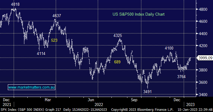 Last week saw US equities bounce back towards the psychological 4000 area which has acted like a magnet over the last 12 months, our preferred scenario is another ~5% upside to fresh 5-month highs.
